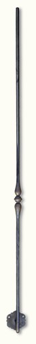 Barreau en fer forgé à facettes avec bague au centre et équerre de rampe intégrée. Diamètre de 14mm et hauteur de 1100mm Largeur du motif 40mm Hauteur du motif 65mm. Attention, ce barreau est affiné : au centre diamètre 12mm mais aux extrémités diamètre 10mm. Fixation par soudure. Utilisation en intérieur ou en extérieur pour toutes sortes de fabrication en fer forgé comme un garde corps, un portail, une rampe d'escalier, une grille de défense, par exemple... Fourni brut grenaillé, à peindre ou à vernir pour le protéger contre la corrosion.