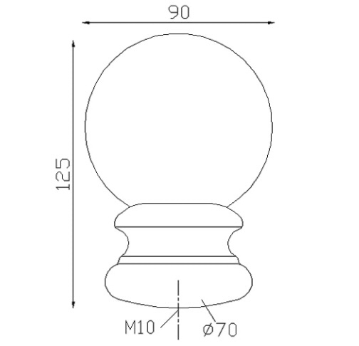 Boule en fonte pleine sur un pommeau estampé. Hauteur 125mm largeur 90mm base du support diamètre 70mm. Sert d'ornement pour toutes vos fabrications, escaliers, pergola, rambardes, par exemple. Fixation par vis (non fournie) grâce au taraudage M10 sous la base. Livrée brut, à peindre ou à vernir avec un produit adapter pour protéger contre la corrosion.