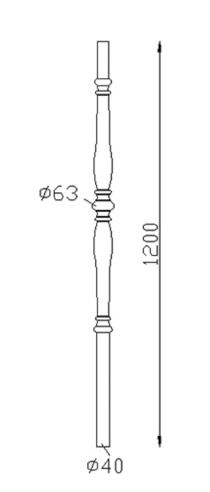 Poteau ou départ de rampe avec détails sur toute la hauteur, en fonte. Hauteur 1200mm base rond creux diamètre Ø40mm. Fixation par scellement. Fourni brut, à peindre ou à vernir pour protéger de la corrosion. Au delà de son rôle sécuritaire, il peut être un élément décoratif dans plusieurs réalisations en fer forgé tel que du mobiliers, divers objets décoratifs, des grilles de défense, des rampes d'escaliers, des kiosques, des gardes corps.