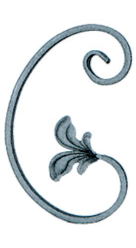 Volute en C finition feuille, modèle gauche décor double face, en fer forgé. Hauteur 200mm Largeur 125mm section en fer plat de 12x6mm. Fixation par soudure. Permet de décorer votre fabrication en fer forgé, portail, clôture, pergola, mais également permet de renforcer la sécurité, en diminuant le vide entre barreau, ou d'augmenter le soutien. Fourni brut, à peindre ou à vernir pour protéger contre la corrosion. Peut être présentée à l'horizontal ou à la vertical.